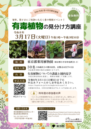 令和7年度 食の安全都民講座 有毒植物の見分け方講座 参加者募集!