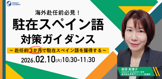 グローバル人材育成・研修業を手掛けるインサイトアカデミー株式会社(本社:東京都港区新橋、代表:金 珍燮)は、無料webセミナー「【海外赴任前必見!】”駐在スペイン語” 対策ガイダンス~ 赴任前3か月で駐在スペイン語を獲得する~」を開催致します。