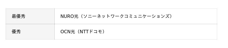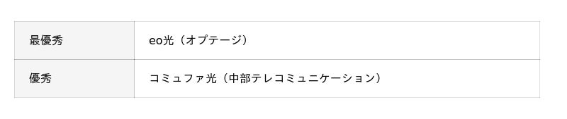 地域別では電力系事業者のサービスが高い支持を得ていますが、東海地域では「キャッチネットワーク」が最優秀を獲得しました。また各社がしのぎを削る10Gサービスですが、昨年の「eo光」にかわり「@nifty光(ニフティ)」が最も満足度の高いサービスとなりました。なおプロバイダ部門では、今年も「ASAHIネット(朝日ネット)」が1位を獲得しました。