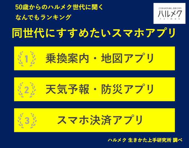 【50歳からのハルメク世代に聞く なんでもランキング】50歳以上の女性が選ぶ「同世代にすすめたいスマホアプリ」