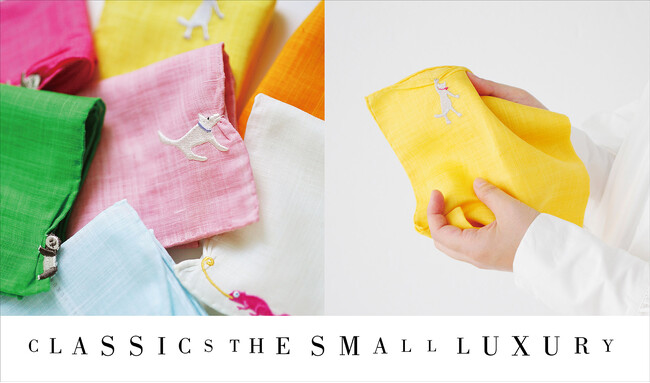 ハンカチは、小さな布にすぎない。けれど、そこに様々な思いをこめることができます。シーズンごとに変化する趣向を凝らしたデザイン。良質な素材。美しい意匠。企画、デザイン、生産、刺繍加工、接客、包装に至るまで。“格別の、ひそやかな贅沢“を誰かの日々にお届けすることを願い、クラシクス・ザ・スモールラグジュアリは生まれました。私たちは、ハンカチを扱うスペシャリティストアです。いち枚のハンカチにこめたたくさんの愛を、世界中へ。