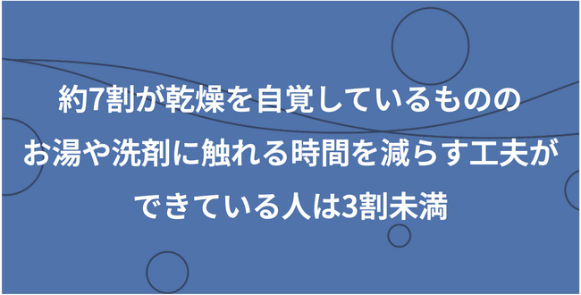 約7割が乾燥を自覚しているもののお湯や洗剤に触れる時間を減らす工夫ができている人は3割未満