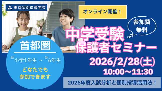 2026年度首都圏中学入試直後の最新情報をお伝え! 2月28日(土)、中学受験保護者セミナーを東京個別指導学院がオンライン開催