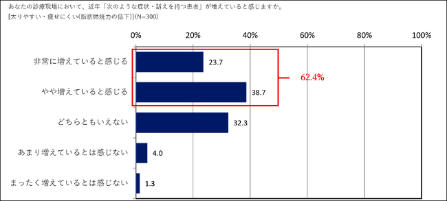 【内科医・産業医300人調査で明らかに】6割以上の医師が、近年「太りやすく」「疲れやすい」患者の増加を実感