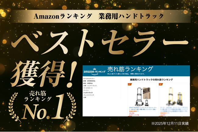 この度、Fun Standard株式会社(株式会社RKB毎日ホールディングス グループ、本社:福岡県大野城市、代表取締役:大屋良介、笹森 広貴)が展開する自動車アクセサリブランドCRAFTWORKS(クラフトワークス)は、「ハンドトラック キャリーカート」がAmazon 業務用ハンドトラック部門においてベストセラーを獲得したことをお知らせいたします。