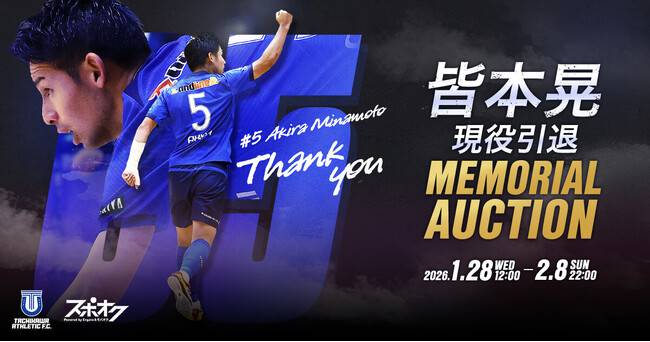 株式会社モバオク(本社:東京都渋谷区、代表取締役社長:小一原 宏樹、以下モバオク)がエンゲート株式会社(本社:東京都中央区、代表取締役:城戸 幸一郎、以下エンゲート)と業務提携し提供するスポーツチーム公式オークションサービス「スポオク」にて、F1リーグ所属の立川アスレティックFCが実施する『立川アスレティックFC 皆本晃 現役引退メモリアルオークション』を2026年1月28日(水)から開始します。