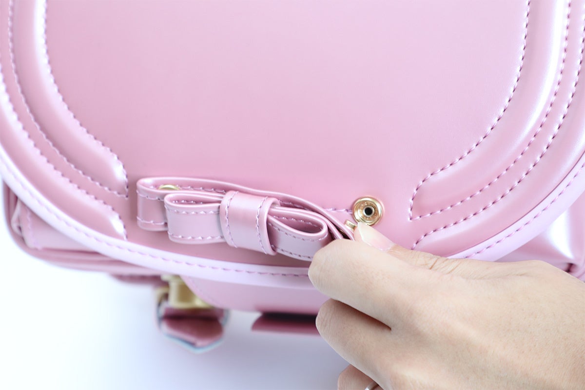 ランドセルにゴールドのキャップも同梱され、立体リボンと取り替えることで、高学年になってもシンプルに使っていただけます。また、好みに応じてリボンを使い分けることができる「着せ替えリボン」(後述)も販売いたします。