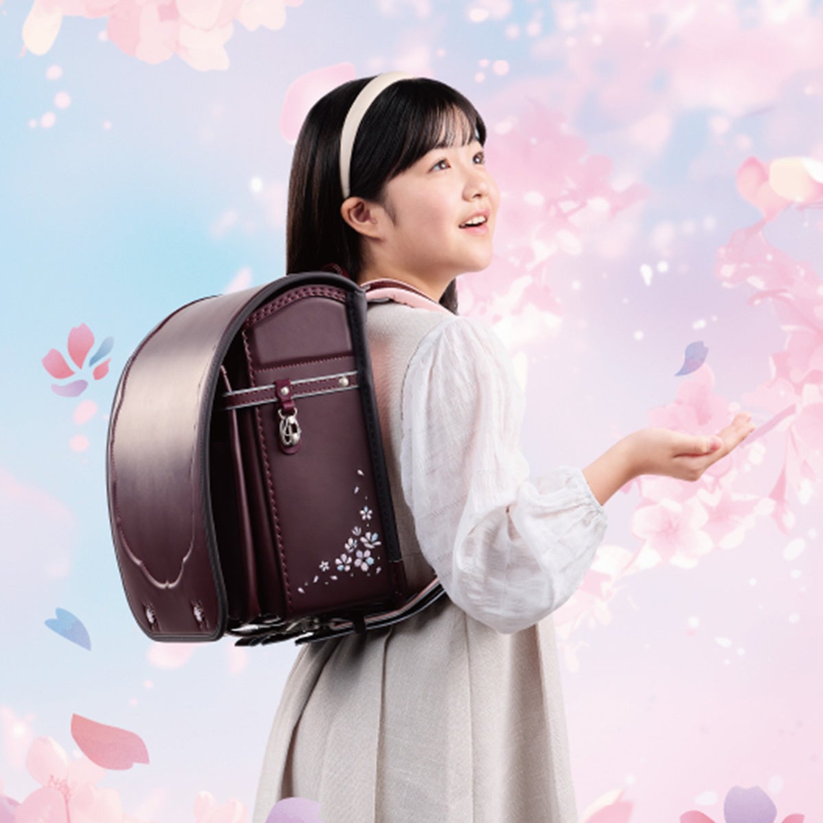 [画像2: https://prcdn.freetls.fastly.net/release_image/33125/39/33125-39-8e0c8ca9f31902f6c9d8e32935f59c47-1200x1200.jpg?width=536&quality=85%2C75&format=jpeg&auto=webp&fit=bounds&bg-color=fff ]桜×和柄のデザインを現代風に柔らかなパステルカラーの刺繍などで仕立て上げた「はなえみ」。プラチナホワイトのやわらかな明るさに、ロイヤルブルーの気品、セピアの落ち着きを組み合わせたカラー展開を用意しました。かわいらしさだけでなく、上品さや大人びた表情も楽しめるカラー展開により、成長に寄り添いながら長く使える相棒として提案します。