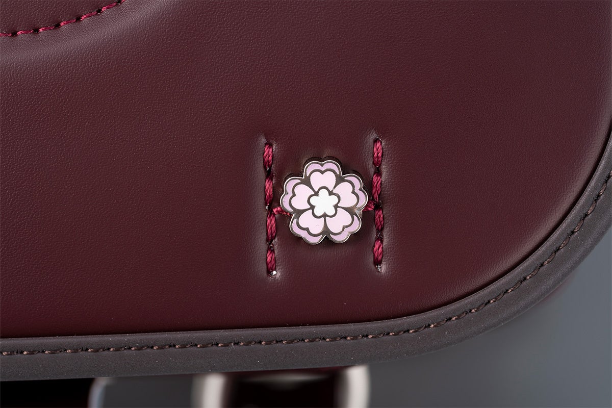ランドセルの鋲は、パステルカラーの桜を上品に取り付け