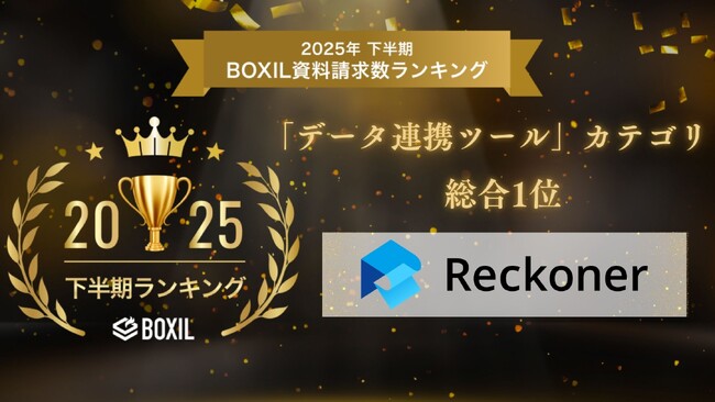 株式会社スリーシェイク(本社:東京都中央区、代表取締役社長:吉田 拓真、以下スリーシェイク)が提供するクラウド型データ連携ツール「Reckoner(レコナー)」は、スマートキャンプ株式会社(以下スマートキャンプ)が主催する「2025年下半期 BOXIL資料請求数ランキング」の「データ連携ツール」カテゴリにおいて総合1位を受賞したことをお知らせします。