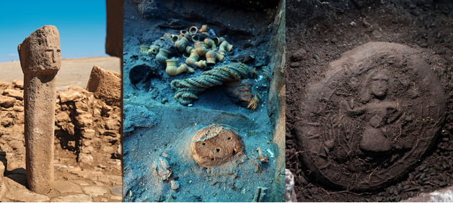 カラハンテペでは既知の神話的表現として最古の三次元像と考えられている、 3体の動物が入った小さな器が発見されたほか、人の顔が彫られたT字型の柱も出土しました。ユネスコ世界遺産に登録されているギョベクリテペでは、壁に埋め込まれた人型の像(献納品と推定)が発見され、セフェルテペでは 2つの人面のレリーフと、両面に顔が彫られたビーズが発見されました。さらに、サイブルチュでは口が縫い合わされた死者を表す人像が発見され、当時の死生観に新たな謎を投じられています。