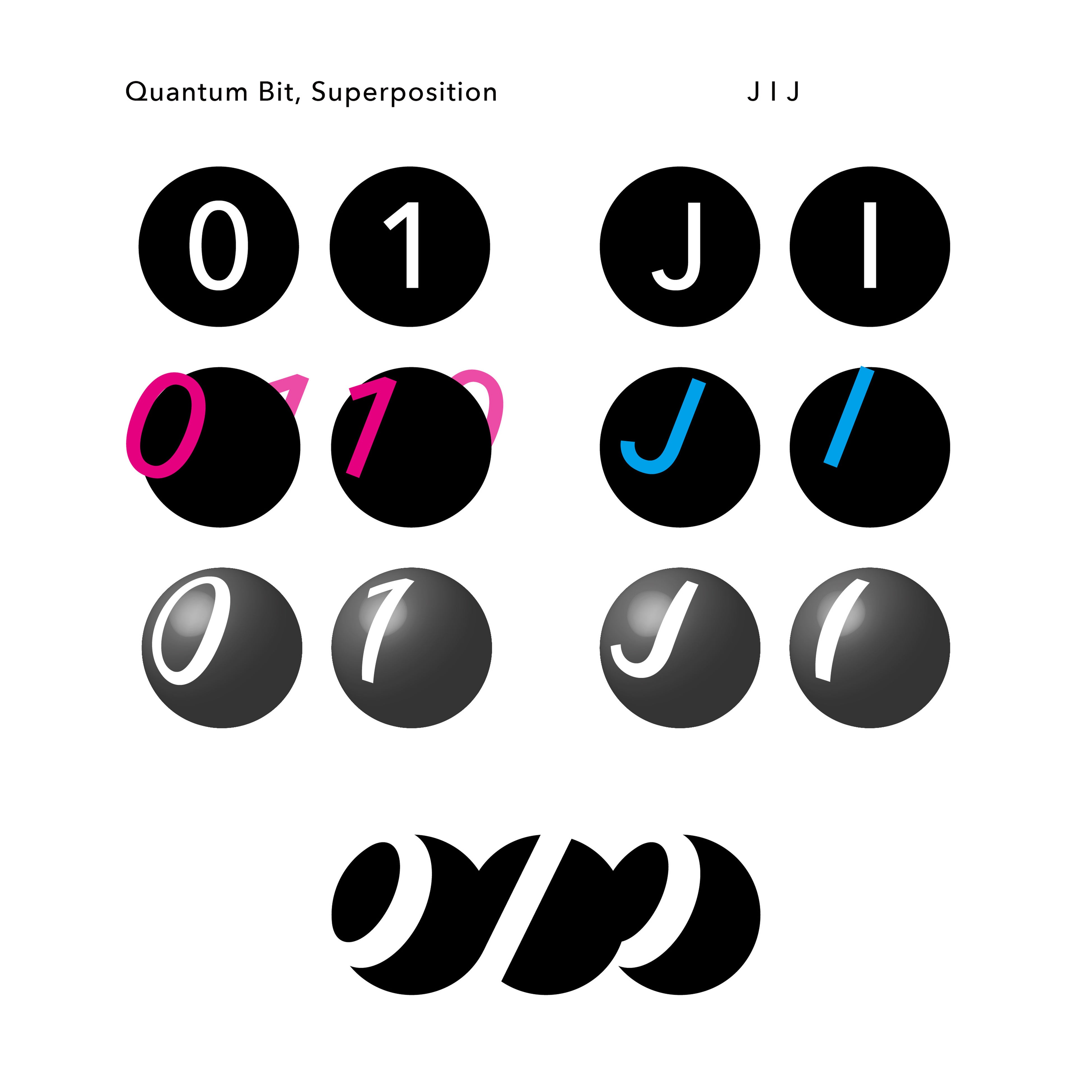 3つの丸が繋がり合うシンボルマークは、量子ビットの相互作用を表すとともに、社会、技術、そしてJIJが相互に結びつき影響し合う関係性を象徴しています。さらに、量子計算の基盤となる「0と1」の概念を社名の「JとI」に見立てることで、量子業界に携わる私たちJIJならではのアイデンティティを体現しました。