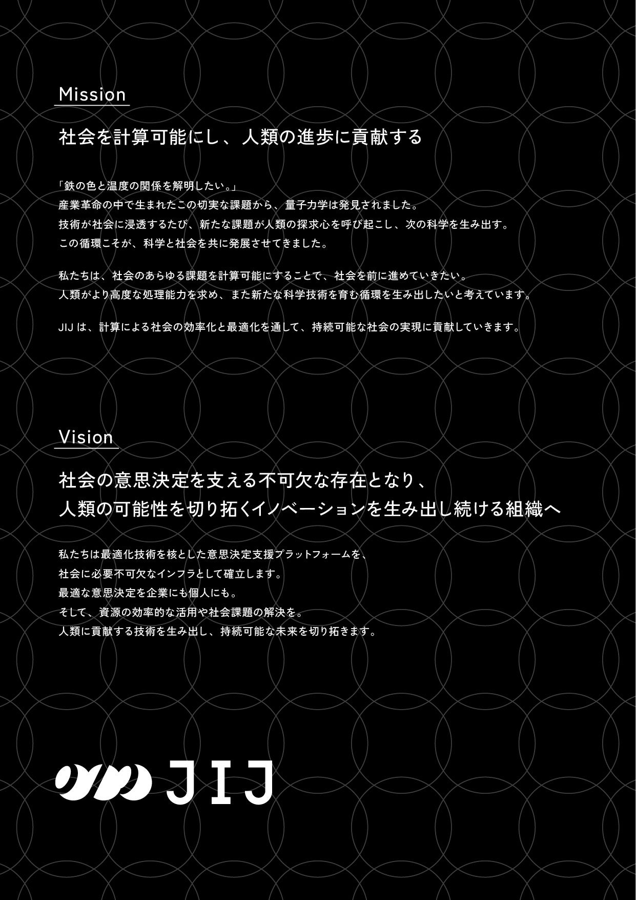 この「相互作用」という概念は、技術と社会、データと意思決定、人と人との繋がりなど、JIJが大切にする理念の核心を成しています。