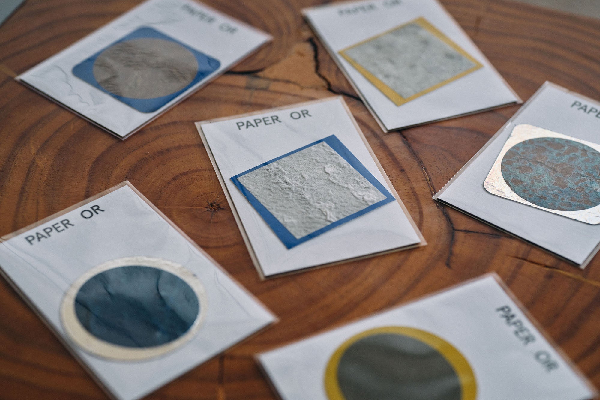 越前和紙は、奉書紙や紙幣にも用いられてきた歴史ある和紙です。なかでも越前市今立地区は、日本有数の産地として知られています。今回は、株式会社山岸和紙店とデザイナー 佐々木拓の協働により「PAPER OR」シリーズを発表。越前和紙のテクスチャーをいかした文具に加え、紙の神様を祀る岡太神社・大瀧神社に着想を得たアロマオイルと和紙のアロマストーンを通して、和紙の魅力を感覚的に伝える新たな提案を行います。