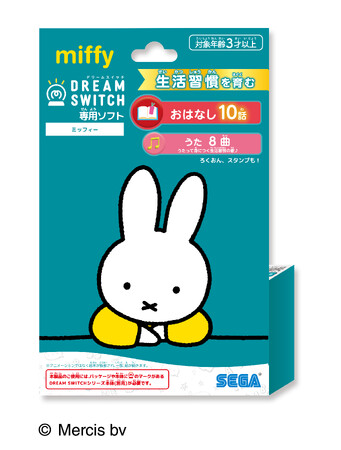 株式会社セガ フェイブ(本社:東京都品川区、代表取締役社長執行役員:杉野行雄、以下セガ フェイブ)は、天井や壁に絵本を投影することでおやすみ前の親子時間を彩るプロジェクター型絵本「ドリームスイッチ」の拡張ソフトの最新作として、世界的中の子どもから大人まで幅広く愛されているミッフィーの絵本を収録した『DREAM SWITCH専用ソフト ミッフィー』を2026年3月26日(木)に発売します。本ソフトは、ミッフィーのお話し10冊と本機でしか聞けないオリジナルソングを8曲収録。手洗いやはみがきなどの生活習慣をわかりやすく伝えるコンテンツで、就寝前の親子時間をさらに楽しい“魔法時間”へ進化させます。