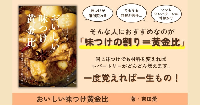 [画像10: https://prcdn.freetls.fastly.net/release_image/2535/8562/2535-8562-8c10207af18c9c54c999b0f22c8bf99c-849x1200.jpg?width=536&quality=85%2C75&format=jpeg&auto=webp&fit=bounds&bg-color=fff ]『おいしい味つけ黄金比 味つけがきまると料理は楽しい!』
