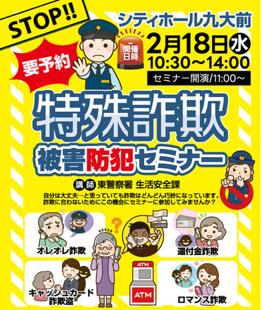 株式会社ベルコ(本社:大阪府池田市)は、2026年2月18日(水)、シティホール九大前(福岡市東区)にて、地域の皆さまを対象とした「特殊詐欺被害防犯セミナー」を開催いたします。