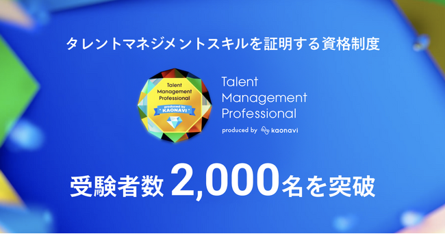 株式会社カオナビ(本社:東京渋谷区、代表取締役社長CEO:佐藤 寛之、以下:当社)が提供するタレントマネジメントシステム「カオナビ」は、タレントマネジメントのスキルを証明する資格制度「Talent Management Professional」において、全ランクを合わせた受験者数が延べ2,000名を突破したことをお知らせします。