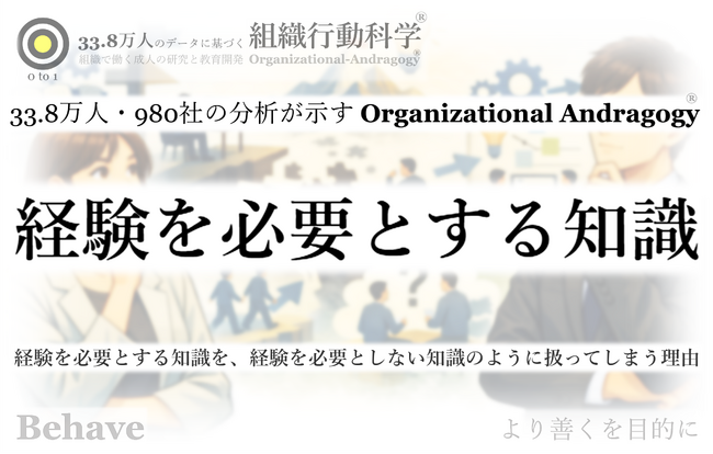 組織行動科学(R)を提供するリクエスト株式会社(本社:東京都新宿区、代表取締役:甲畑智康)が運営する人的資本開発プランニング(R)センターは、国内33.8万人・980社の組織行動データ分析に基づき、「経験を必要としない知識」と「経験を必要とする知識」の違いから、研修・書籍・フレームワークが現場で機能しなくなる構造を明らかにしたレポート『経験を必要としない知識・経験を必要とする知識』を公開しました。