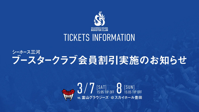 【新企画】もっと熱く「ご青援」を。シーホース三河、ブースタークラブ会員限定のチケット特別割引を試験導入!全席種がお得に