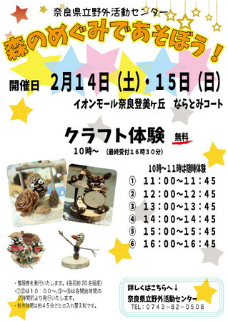 2月14日(土)・15日(日)にイオンモール奈良登美ヶ丘にてネイチャークラフト体験の無料イベントを開催します!