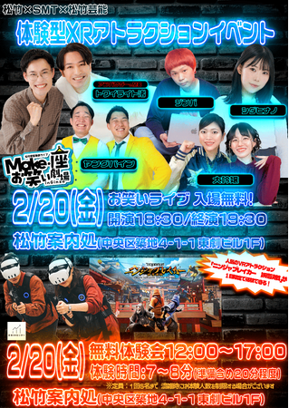 本イベントは、中野ブロードウェイの店舗や東京ドームシティで人気の体験型XRアトラクションと、松竹芸能所属芸人によるお笑いライブを同日に楽しめる、1日限定の特別企画です。