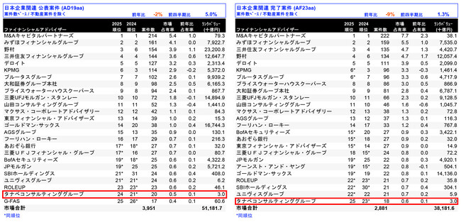 リーグテーブルの詳細は、以下サイトの「M&A市場 四半期レビュー」(登録料無料)にご登録いただき、「M&A(ファイナンシャル・アドバイザー : 日本市場版)」の「2025_Q4」をご覧ください。
