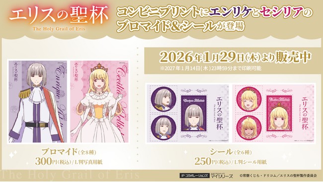 TVアニメ『エリスの聖杯』コンビニプリントにエンリケとセシリアのブロマイド&シールが登場!