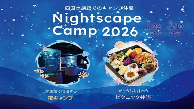 四国水族館(所在地:香川県綾歌郡宇多津町)は、2026年3月28日(土)、4月4日(土)、4月18日(土)の計3回、閉館後の水族館でキャンプ体験ができる夜の水族館『Nightscape Camp2026春』を開催します。