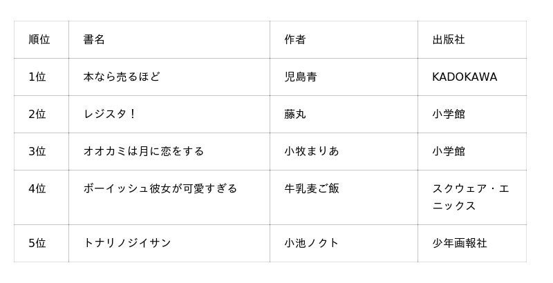 「出版社コミック担当が選んだおすすめコミック2026」ランキング上位5作品