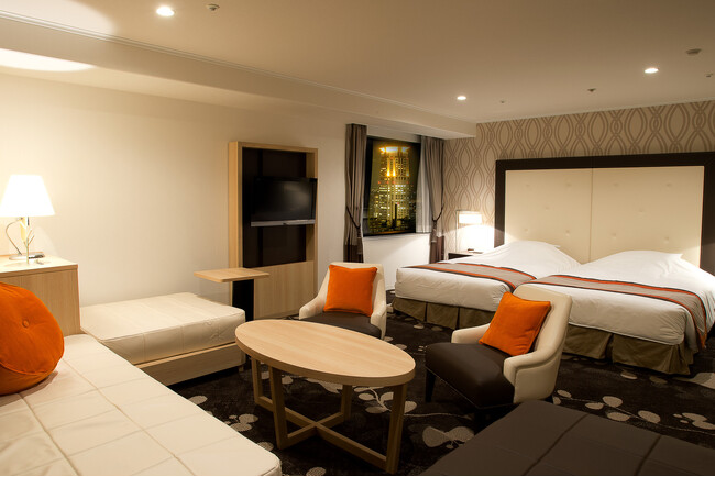 春休み・卒業旅行・ドライブ旅行の需要が高まる季節、本プランでは多様な部屋タイプをご用意します。4名様までご利用いただけるファミリールームは、ご家族やグループでのご宿泊に人気のお部屋です。その他、スタンダードなツインルームもございますので、ご利用シーンにあわせてお選びください。また、お土産としてお持ち帰りいただくことができる「大阪弁トランプ」と、ご滞在中にお部屋で遊べる「スーパーイタイワニー」ゲーム貸出をご用意します。翌日は通常より1時間長くお部屋を利用できるよう13時のチェックアウトで朝もゆっくりお過ごしいただけます。
