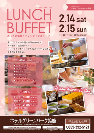 【ホテルグリーンパーク鈴鹿】「ランチビュッフェ ~あったか洋食&バレンタインスイーツ~」を開催