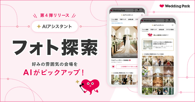 【結婚準備クチコミ情報サイト「Wedding Park」】好みの雰囲気を直感的に選べる AIアシスタント「フォト探索」をリリース ~独自のプロンプトによる画像解析で、新たな結婚式場との出会いを創出~