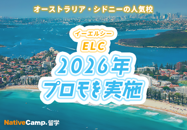 ネイティブスピーカーと回数無制限のオンライン英会話サービス「ネイティブキャンプ英会話」を展開する株式会社ネイティブキャンプ(東京都渋谷区 代表取締役: 谷川国洋)は、海外留学エージェントサービス「ネイティブキャンプ留学」において、オーストラリア・シドニーの人気校「ELC」にて、2026年プロモを実施いたします。