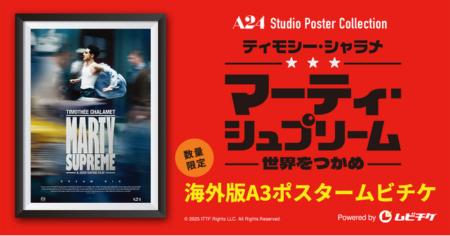 株式会社ムービーウォーカー(代表取締役社長:五十嵐淳之)は、1月30日(金)AM10:00より『マーティ・シュプリーム 世界をつかめ』(3月13日公開)のA3サイズ海外版ポスタームビチケ前売券(オンライン)を数量限定で販売します。
