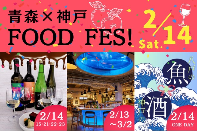 フェリシモは、青森県が推進する「神戸・関西への魅力発信・展開支援」(※1)の取り組みに関し、「令和7年度青森・神戸共創ビジネス推進業務」を受託しています。この取り組みをきっかけに、フェリシモの働きかけにより青森県とのつながりを持った神戸市の企業3社が、主体的な連携によるイベントをバレンタインデーを契機に共催します。それぞれの特色を生かし、神戸港近く“ニューシーポート”エリアの施設で、青森県・神戸市の協力を得て開催する食体験イベント「青森×神戸FOOD FES!」です。イベントを実施するのは、ポトマック、安福又四郎商店、フェリシモです。ポトマックはフードホール「TOOTH TOOTH MART FOOD HALL&NIGHT FES」にて、青森のご当地グルメが味わえるポップアップイベント「TOOTH MART meets 青森県」を2月13日(金)~3月2日(月)に開催。安福又四郎商店は新港町のレストラン「Sincro」を会場に八戸の魚と神戸の日本酒のランチとディナーのペアリングコースを2月14日(土)に各回26席限定で提供します。フェリシモは都市型ワイナリー「f winery」で、青森のチョコスイーツと神戸のワインと日本酒の特別なペアリング体験を2月14日(土)に、さらに2月14日(土)~23日(月・祝) の土・日・祝5日間に青森×神戸のミニペアリングメニューを提供します。