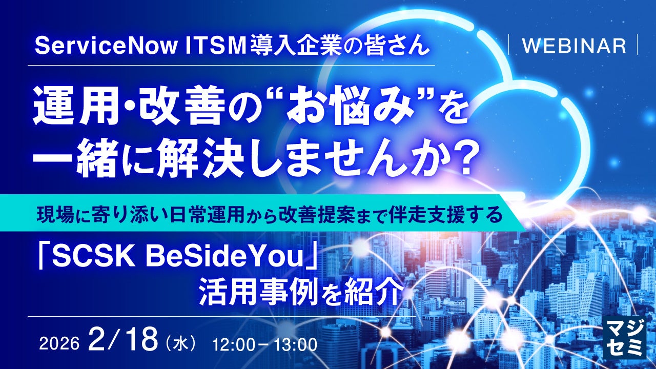 マジセミ株式会社は「ServiceNow ITSM導入企業の皆さん、運用・改善の“お悩み”を一緒に解決しませんか?」というテーマのウェビナーを開催します。