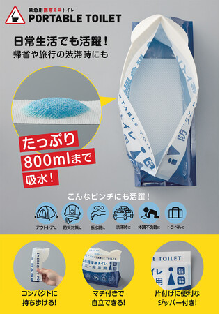 [画像5: https://prcdn.freetls.fastly.net/release_image/29256/460/29256-460-5357f09d53621f1cd97c03141ed8939e-1500x751.jpg?width=536&quality=85%2C75&format=jpeg&auto=webp&fit=bounds&bg-color=fff ]使用後はジッパーを閉じ、付属の捨て袋に入れて処理するだけ。中身が見えにくく、後処理もスムーズ。本体・捨て袋・吸水ポリマーシートがすべてがセットになった3個組なので、家族用や複数シーンの備えにも便利です。