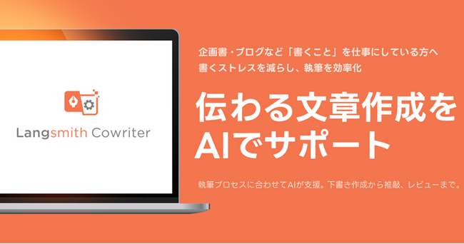 AIで伝わる文章作成をサポート「Langsmith Cowriter」を提供開始 執筆プロセスに合わせてAIが支援。下書き作成から推敲、レビューまで。
