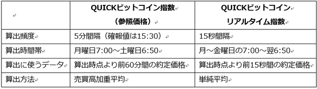 「QUICK ビットコインリアルタイム指数」を公表サイトに掲載開始