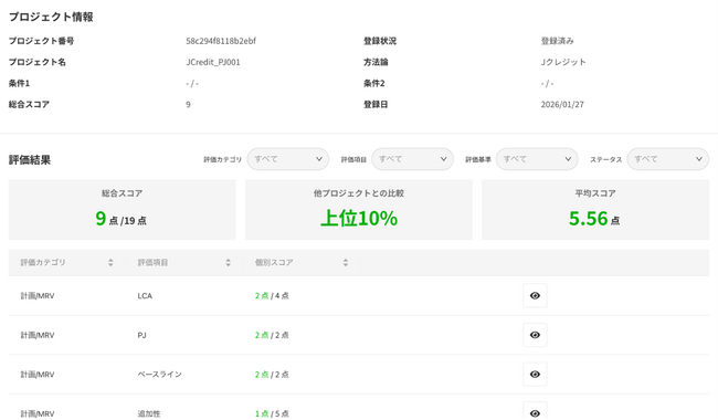 これまでGreenCheckerでは「ボランタリークレジット」を中心とした700以上のプロジェクトの評価結果を閲覧することができました。今回の機能拡充により、約800件の全てのJクレジット※3のプロジェクト評価結果の閲覧も可能となり、両者合わせてプロジェクト約1500件の評価結果を閲覧できます。制度の国際的な整合性やリスク評価にも対応できる体制が整い、これにより、企業等はより信頼性の高い情報を基にカーボンクレジットの活用判断ができるようになります。