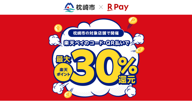 楽天ペイメント株式会社(以下「楽天ペイメント」)は、運営するキャッシュレス決済サービス「楽天ペイ」において、鹿児島県枕崎市が2026年2月1日(日)から2月28日(土)まで実施する「枕崎市キャッシュレス キャンペーン第5弾」に参加することをお知らせします。