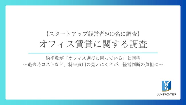 サンフロンティア不動産株式会社(本社:東京都千代田区、代表取締役社長:齋藤 清一、以下「当社」)は、従業員数100名未満の法人に所属する本部長クラス以上の経営層500名を対象に、「オフィス賃貸」に関する調査を実施しました。