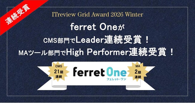 「ITreview Grid Award 2026 Winter」ferret Oneが2部門で受賞 - CMS部門でLeader、MAツール部門でHigh Performerを連続受賞 -