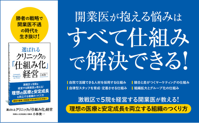 約4割のクリニックが赤字! 開業医不遇の時代を生き抜くための組織づくりを解説した書籍『選ばれるクリニックのための「仕組み化」経営』が本日発売!