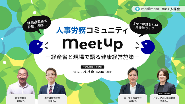医療機関向け遠隔医療通訳や企業の健康経営支援を行うメディフォン株式会社(東京都港区、代表取締役:澤田真弓、以下「当社」)は、人的資本経営や健康経営をテーマに実務者同士が学び合う人事労務コミュニティ「サンケンラボ」の第2回イベントを、2026年3月3日(火)に東京都内で開催します。
