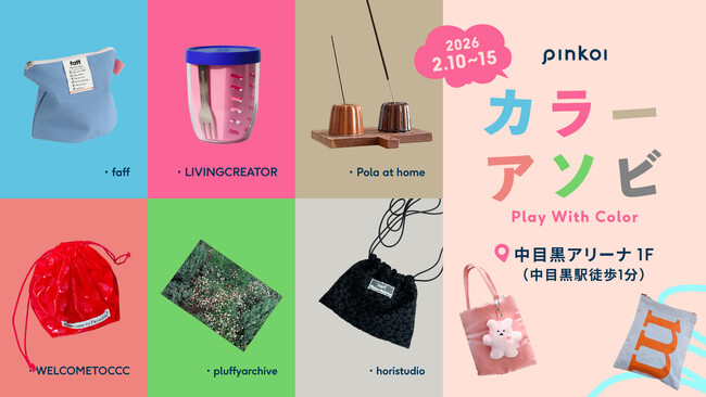 台湾発・アジア最大級の越境ECサイト Pinkoi(ピンコイ) は、韓国の人気カラーデザイン雑貨を集めたPOPUPイベント「Play with Color カラーアソビ」 を、2026年2月10日(火)~2月15日(日)の6日間、中目黒アリーナ1Fにて開催します。