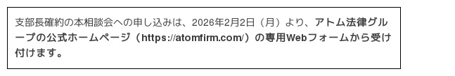 アトム法律グループ(本社:東京都千代田区、代表:岡野武志)は、交通事故をはじめとする重大事故の被害者やご遺族を対象に、無料の電話相談会を実施いたします。本相談会では、名古屋支部長である東山大祐弁護士が対応します。
