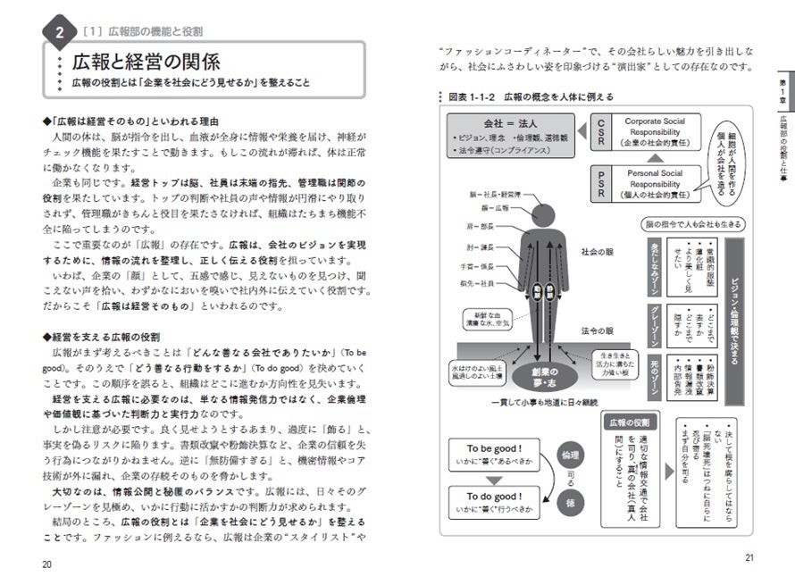[画像1: https://prcdn.freetls.fastly.net/release_image/82530/448/82530-448-7c95d0c9c5418b01471332048d2a8aea-1000x1420.jpg?width=536&quality=85%2C75&format=jpeg&auto=webp&fit=bounds&bg-color=fff ]タイトル:広報部員の基礎知識 図解でわかる 役割・機能・仕事――部門に1冊の実務マニュアル
