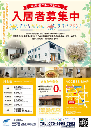 運営施設:就労継続支援B型事業所 きらら三福、障がい者グループホーム きらら坊ちゃん
